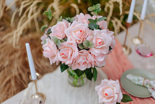 - Elegant Glassware: Glass vases enhance the beauty and realism of our centerpieces.